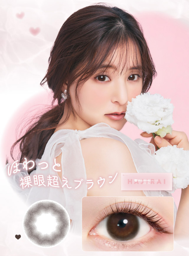 着けると瞳にほわっと溶け込み、透明感溢れるナチュラルなダークブラウンでうるうる感を演出♡
