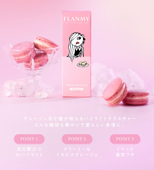 FLANMY ( フランミー ) = flan ( 甘い・デザート ) + MY ( 私 ) とことん"大人可愛いさ”を追求したカラコンが誕生♡